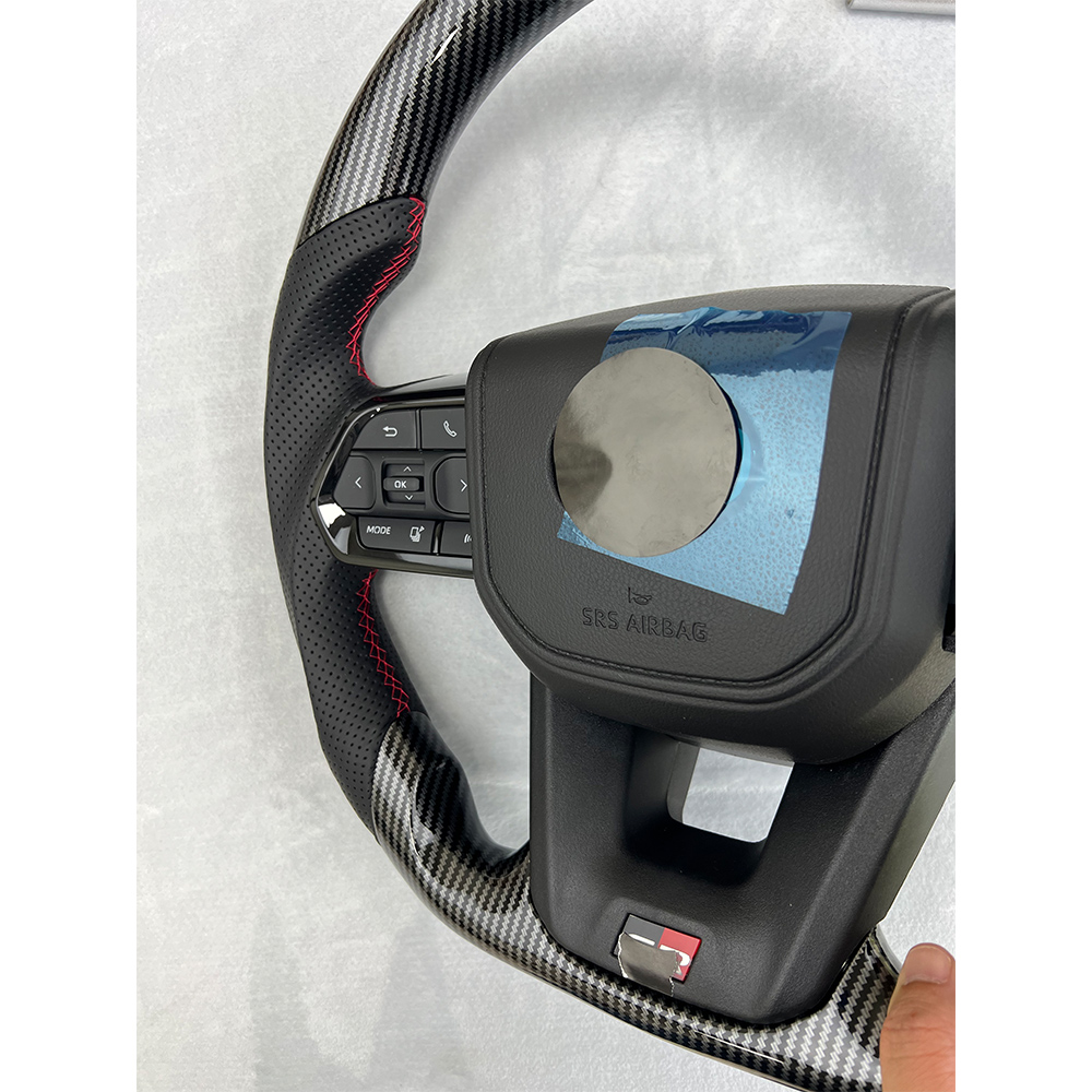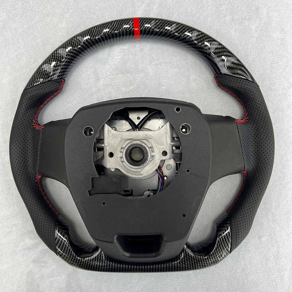 Exclusive Renewal for Toyota Hardcore Models! Flat bottomed sports carbon fiber pattern water transfer printing steering wheel assembly, with delicate patterns outlining a high-end texture. The eye-catching red return to center mark provides precise navigation, enhancing the precision of handling and the sense of driving ceremony. Compatible with multiple classic models such as Crown and Dominator, it provides a comfortable grip and anti slip performance, instantly activating the sporty genes of off-road and business vehicles, and upgrading the driving style with just one click